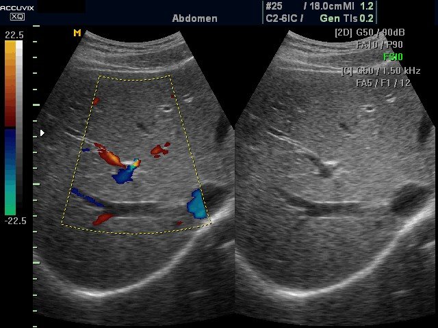 - Dual Live Mode (двойной динамический дисплей) - одновременное отображение на мониторе двух изображений в режимах В и В-цвет, в реальном масштабе времени.