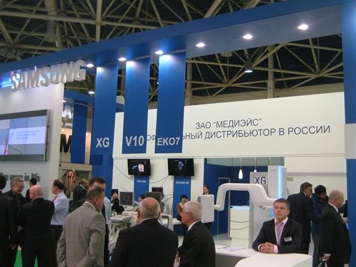 Компания «Медиэйс» (официальный дистрибьютор Самсунг Медисон в РФ) продемонстрировала новинки: ультразвуковую систему класса премиум Accuvix-A30, аппарат высокого класса H60, ультразвуковую систему PT60A (формата "планшет") и цифровой рентгеновский аппарат XGEO-GU60. На стенде также были представлены стационарные системы Accuvix-V10, Accuvix-XG, EKO7, SonoAce-R7, портативные MySono-U6 и SonoAce-R3.