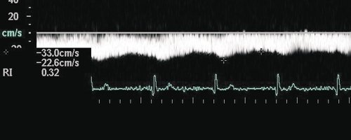 - преходящее аннулирование потока в портальных венах возможно при трикуспидальной регургитации. Механизм этого явления до конца не понятен и может быть связан, например, с ритмичным увеличением синусоидального давления в систолу желудочков сердца;