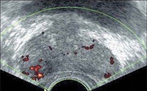 Доказана высокая диагностическая эффективность комплекса ультразвуковых методик с включением ТРУЗИ в режиме энергетического картирования с последующей трехмерной реконструкцией в диагностике рака предстательной железы (рис. 5) на разных стадиях развития заболевания. ТРУЗИ с ультразвуковой ангиографией являются наиболее точными методиками в ранней диагностике местного рецидива рака предстательной железы после радикальной простатэктомии.