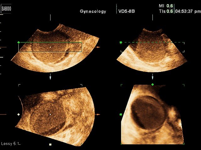 [RU] Ultrasound image №344: Ovarian cyst in 3D mode.